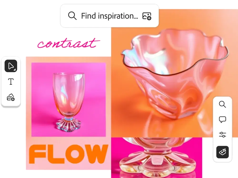 從靈感到反覆操作,您情緒板所需的一切,全都在同一個無邊無際的畫布之中。上傳您的影像和草圖、提取 Adobe Stock 中的資源,或從零開始打造您的品牌、時尚設計等,一氣呵成。